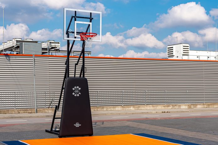 Sure Shot od lat produkuje wytrzymałe konstrukcje koszykarskie zgodne z normą EN1270. Obręcze, tablice i podstawy projektowane są pod kątem bezpieczeństwa i stabilności podczas intensywnego użytkowania.