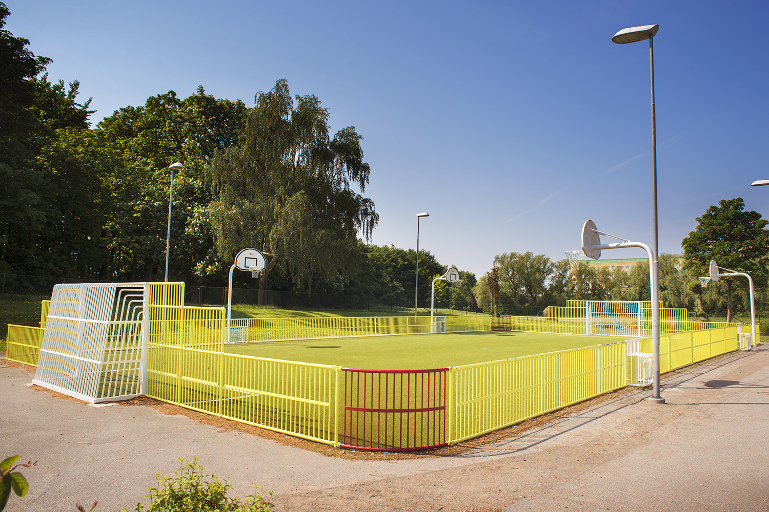 Trwały, lekki i odporny na warunki atmosferyczne – idealny do boisk, parków i przestrzeni rekreacyjnych, zapewnia długą trwałość i wygodę użytkowania.